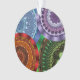 Water, fire, earth, and wind themed concentric circle mandalas come together in this colourful design. Each features a similar centre and outer layer with the others being appropriate to the element.