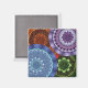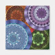 Water, fire, earth, and wind themed concentric circle mandalas come together in this colourful design. Each features a similar centre and outer layer with the others being appropriate to the element.