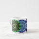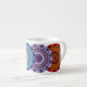 Water, fire, earth, and wind themed concentric circle mandalas come together in this colourful design. Each features a similar centre and outer layer with the others being appropriate to the element. This mug is available in jumbo, espresso, and bone china sizes and styles.