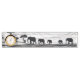 If you love elephants, this is the illustration for you! It's an artistic, minimalist depiction of a group of elephants walking through an African landscape. The elephants are in black and white, contrasting with the background of hills, trees and mountains. The sky is filled with horizontal lines, creating a sense of depth and distance. Enjoy this illustration to bring a touch of elegance and nature to your surroundings!