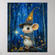 Step into a tiny world of magic with The Enchanted Magician Mouse, a whimsical fantasy wall art print full of charm and wonder. The artwork features an adorable mouse dressed in a flowing magician’s cape and star-tipped wizard hat, holding a glowing wand as golden sparks drift through a celestial night sky.