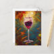 Postcard featuring an artistic wine glass filled with an enchanting red wine. Digital watercolor created using AI generating software.