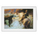Vintage artwork titled, "The Enchanted Shore" by Rowland Wheelwright depicts mermaids in a rocky cove tempting a soldier on horseback to come closer to them. Card is blank inside for your handwritten message.