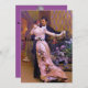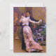 The dancers are doing a waltz. It seems a nice picture for a New Year's Eve celebration. It is a beautiful pink ball gown on the lady with flower trim. On the back is a guest at another party sitting it out for a bit. The pictures are in public domain.