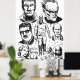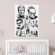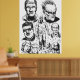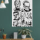 Black and white illustration featuring several iconic characters from the legendary Argentine comic "El Eternauta," including Juan Salvo in his protective suit, Elena, Martita, Favalli, and the fearsome Cascarudo. A tribute to the science fiction and adventure universe created by Oesterheld and Solano López.