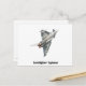 The Eurofighter Typhoon, the worlds most advanced new generation multi-role, swing-wing combat aircraft, seen against a white background, with the title "Eurofighter Typhoon" in black text. The photo was taken at the Dawlish Airshow in Devon, England