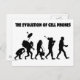 Standard ape to modern man evolutionary line up with a twist. This evolution shows the progression of the cell phone hair from it’s tin can beginning to man’s current head down, text mode position.