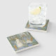 The coasters are gorgeous, a quality feel and heavy weight. They look like a precious archeological find. A rustic stone juxtaposed with a modern floral black and white print. I like the way the print goes slightly imperfect on the cut stone edges giving them a kind-of natural beauty.