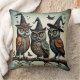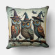 Scary but cute. A trio of owls wearing witch's hats; surreal style, an artificial-intelligence generated artwork on a tote suitable for carrying many things, but especially the trick-or-treat loot.