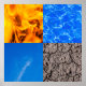 A composition of four magical elements: Fire, Water, Air and Earth. The Fifth one is, in fact, the owner of the product. Just for fun