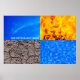 A composition of four magical elements: Fire, Water, Air and Earth. The Fifth one is, in fact, the owner of the product. Just for fun