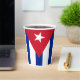 The national flag of Cuba personalised has five alternating blue and white stripes. A red equilateral triangle with a white five-pointed star in the middle of it completes the design. The flag of Cuba was designed in 1849 and was adopted on May 20, 1902. If you wish to personalise this design with your name, initials or other text, choose the "edit" button and add whatever text you desire.