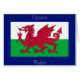 The flag of Wales on a dark blue background. Wales printed in English and Welch.