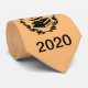 This tie is polyester/silk and is gold and black. A design of school books, lantern, and flame. "Graduation 2020" is a saying to finish off the tie.
