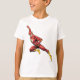 100% cotton so perfect for summer, It is a nicely designed t-shirt, the fabric is soft and the seams finished well, the body of the t shirt has no side seams. I bought a medium size for my two grandsons, aged 9 and 8 it will be slightly big on them but I would rather that than too small