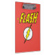 Check out this iconic logo for The Flash, featuring his name in telescopic speed style over the bright yellow lightning bolt in circle icon!
