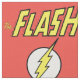 Check out this iconic logo for The Flash, featuring his name in telescopic speed style over the bright yellow lightning bolt in circle icon!