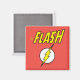 Check out this iconic logo for The Flash, featuring his name in telescopic speed style over the bright yellow lightning bolt in circle icon!