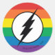 DC Pride | The Flash's iconic logo with layers of rainbow colours inside it.