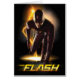 Check out The Flash crouched down in a running start position, lightning striking the ground behind him.