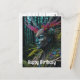 A close-up portrait of a fantastical creature adorned with feathers and greenery, standing in a lush forest setting.