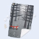 A lone wild red fox stands beneath the pine trees in a dark forest. For nature, wildlife and animal lovers.