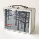 This is a standard metal lunchbox that appears to work just fine. We designed this box ourselves with an uploaded photo and custom text on the front and back. It looks absolutely beautiful except the front of the lunchbox is not centered like it shows in the photo. The print borders don't align with the inset flat part of the box where the preview photo online showed it perfectly centered in there. The back looks nice and centered though.
