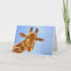 This enchanting oil painting of a friendly African giraffe by Sharon Carter really takes your eye. Gazing placidly towards you it makes eye contact, following you around whatever direction you view it from. This card can be personalised with your own message on the inside to suit any occasion.