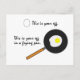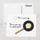 The Frying Pan is a funny postcard that tells the story of an egg, a frying pan, and the devastating breakfast that resulted when their paths crossed one fateful morning. It also proves beyond the shadow of a doubt that the correct answer to "Which came first, the egg or the fried egg?" is "The egg."