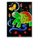 Funny, funky turtle painting in bright primary colours, with butterfly and flowers.