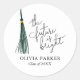 Fun and modern graduation party favour sticker featuring typography text with an inspirational quote that says "the future is bright" with an illustration of green tassel.