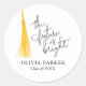 Fun and modern graduation party favour sticker featuring typography text with an inspirational quote that says "the future is bright" with an illustration of yellow tassel.
