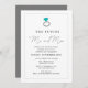 Grey and turquoise engagement party invitations featuring a cute engagement ring "The future Mr and Mrs" design. Customised with your names and party details.