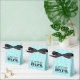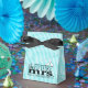 Add a modern chic wedding shower favour to your special day! This pretty little striped favour box is in a popular robins egg or aqua blue, Tiffany blue colour with the words "The Future Mrs." in black, with your married name! Two white love birds share one heart. Text under flap "thank you for sharing my day!" Blue and white stripes and a black ribbon makes this elegant bridal shower guest favour perfect! Makes a wonderful "thank you gift box" for your bridesmaids! Personalise with the bridesmaids name on back of box. Don't forget to add one for your mother and mother-in-law to be! Congratulations!