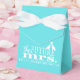 Add a modern chic wedding shower favour to your special day! This pretty little favour box is in a popular Robins egg or aqua, Tiffany blue colour with the words "The Future Mrs." with your married name! Two love birds share one heart. Text under flap "thank you for sharing my day!" A white ribbon makes this elegant bridal shower guest favour perfect! Makes a wonderful "thank you gift box" for your bridesmaids! Personalise with the bridesmaids name on back of box. Don't forget to add one for your mother and mother-in-law to be! Congratulations!