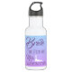 A special water bottle favour for the bride to be, this item features a lovely blue and lavender ombre background with templates for customisation. "Bride" is written at the top in cursive purple font followed by "The Future" with "Mrs." written in dramatic calligraphy. Beside "Mrs" is a white wedding gown. At the very bottom is a template for inserting your new last name. Place your order today!