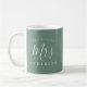 The future Mrs engagement gift coffee mug, a chic, modern and simple design with the text mrs in white elegant script on a dusty green background. Simply add your name and address. Exclusively designed for you by Happy Dolphin Studio. If you need any help or matching products please contact us at happydolphinstudio@outlook.com. We're happy to help you make your engagement party a wonderful event!