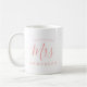 The future Mrs engagement gift coffee mug, a chic, modern and simple design with the text mrs in pink elegant script on a white background. Simply add your name and address. Exclusively designed for you by Happy Dolphin Studio. If you need any help or matching products please contact us at happydolphinstudio@outlook.com. We're happy to help you make your engagement party a wonderful event!