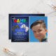 How cool is this gaming birthday invitation! Perfect for boys of all ages. Super fun and colourful featuring a photo of the birthday child, a blue pixel background, the text "THE GAME IS ON!", video game controllers and a birthday template that is easy to personalise.
