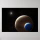 Artist's concept of the gas giant planet Kepler-1625b and a suspected accompanying moon. Estimated to be as big as the planet Neptune, the moon is unlike anything found inside our solar system. It might have formed through a different process than known for the solar system's nearly 200 moons. The planet and moon orbit the star Kepler-1625, located 8,000 light-years away in the constellation Cygnus. The parent star is similar to our Sun, and the planet and moon are located in its habitable zone where temperatures allow for liquid water to remain stable. However, both worlds are gaseous bodies and not suitable for life as we know it.