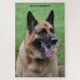 This is a large jigsaw puzzle of a German Shepherd dog (also known as an Alsation dog). The words "German Shepherd" are at the top of the puzzle, but you can alter or remove them if you wish. This is a very handsome dog, he is sitting and pictured from the front, with the main focus of the photo being on the dogs face.