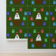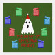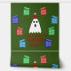 This awesome patterned wallpaper features a cute Christmas ghost with black eyes and mouth wide open. The ghost is wearing a festive red and white hat with a pompom on the top. There are sparkly red, blue and green presents surrounding the ghost. A message in festive red text below the ghost says "The Ghost of Christmas Presents" in bold capital letters. This funny festive design is suitable for all ages.