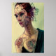Futuristic, stylish portrait of a dweller with implanted cyber tattoos.
