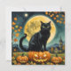 The glowing eyes of jack-o'-lanterns and black cats and even the moon set the festive mood for this Halloween party invitation.