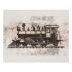 A very old and original steam locomotive stands proudly on its weathered rails, every bolt and rivet telling a story from a bygone era. Bathed in a warm sepia tint, the engine glows with vintage charm, its iron body worn yet dignified, its great steel wheels still poised as if ready for one more journey. Soft wisps of steam curl around its chimney, drifting upward like memories rising from the past. The aged brass fixtures, faded lettering, and soot-kissed panels complete a scene that feels timeless, nostalgic, and full of quiet power. It is a monument to the early days of rail travel, captured in a photograph that looks lovingly preserved from another century. This nostalgic look back at the golden age of steam would proudly adorn any wall in your home as a framed print.