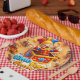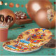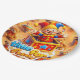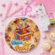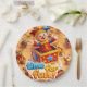 Description set the stage for a magical celebration with our time for fun PREMIUM party plates the circular design features are iconic cheerful gesture springing from a star studded box surrounded by a rich and nostalgic world of soft teddy bears and colourful spinning tops the warm golden tone background creates a high definition, vintage toybox aesthetic that brings a touch of classic charm to your party table perfect for serving birthday cake or festive snacks these durable and vibrant plates turn every bite into a joyful trip down