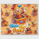 Description make every gift feel like a magical surprise with our time for fun luxury wrapping paper. This enchanting design features are cheerful gesture springing from his star studded box repeated across a warm golden background filled with nostalgic teddy bears and vintage spinning tops the rich high definition details and soft amber glow give your presents a classic high-end toy shop aesthetic that's perfect for birthdays holidays or any special occasion it's not just gift wrap. It's a beautiful preview of the joy