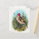 Beautiful vintage image of a goldfinch perched on a branch and surrounded by leaves and flowers.