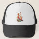 Vintage pin-up picture from a classic age. A fun, sassy picture of a retro pinup pose. Girl fishing for "goldfish" that have faces of men.