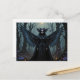 A dark fairy of the enchanted, haunted forest stands facing the viewer. She is dressed in black, with twigs, flowers, and feathers as her crown. Beautiful, fantasy postcard, perfect for those who enjoy the darker fairy tales.